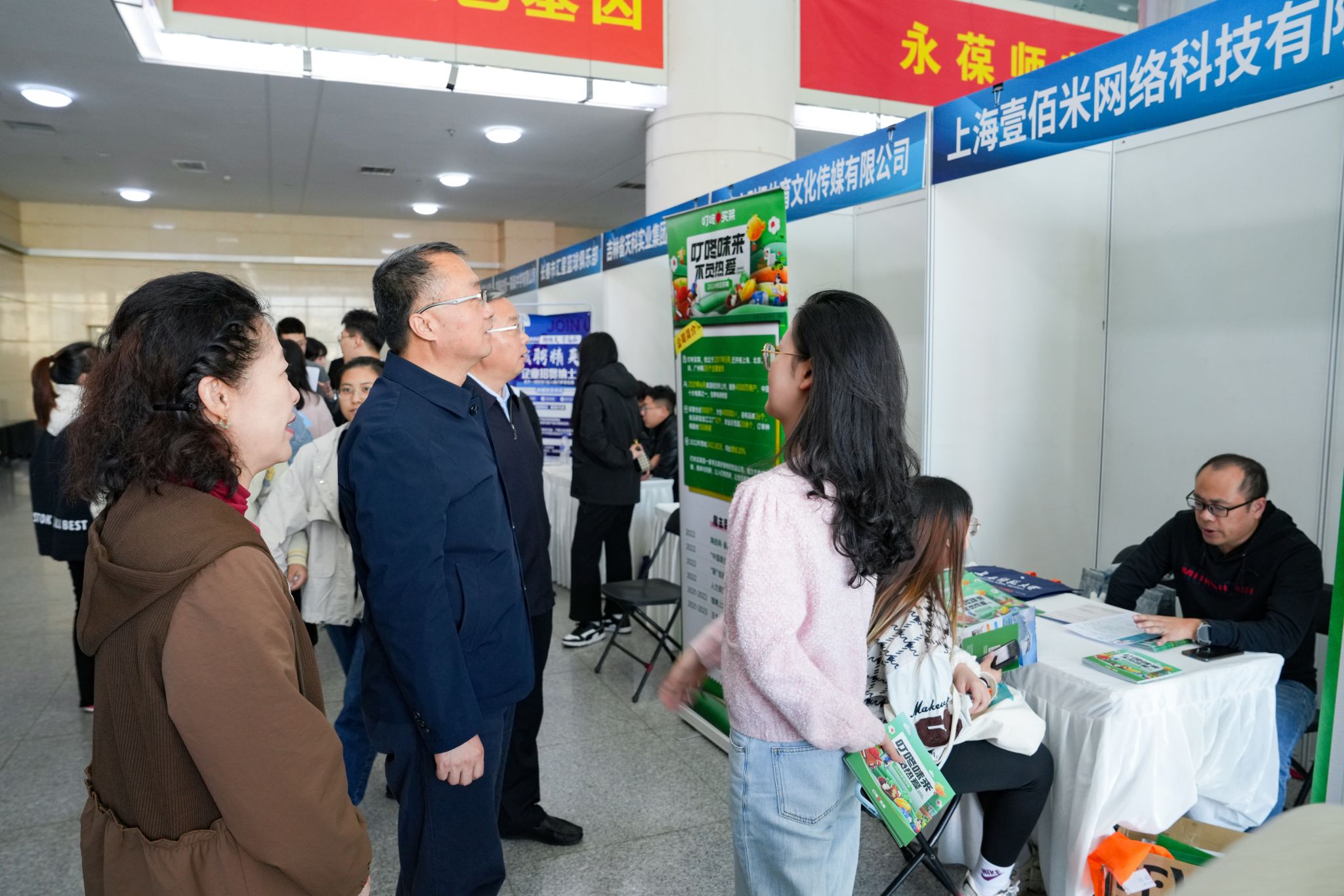 10月13日上午,校长王延明、党委副书记刘国宁深入学校“两类四专”招聘服务季(第七季)秋季双选会(第一场),与师生和招聘单位亲切交流,现场指导毕业生就业工作。