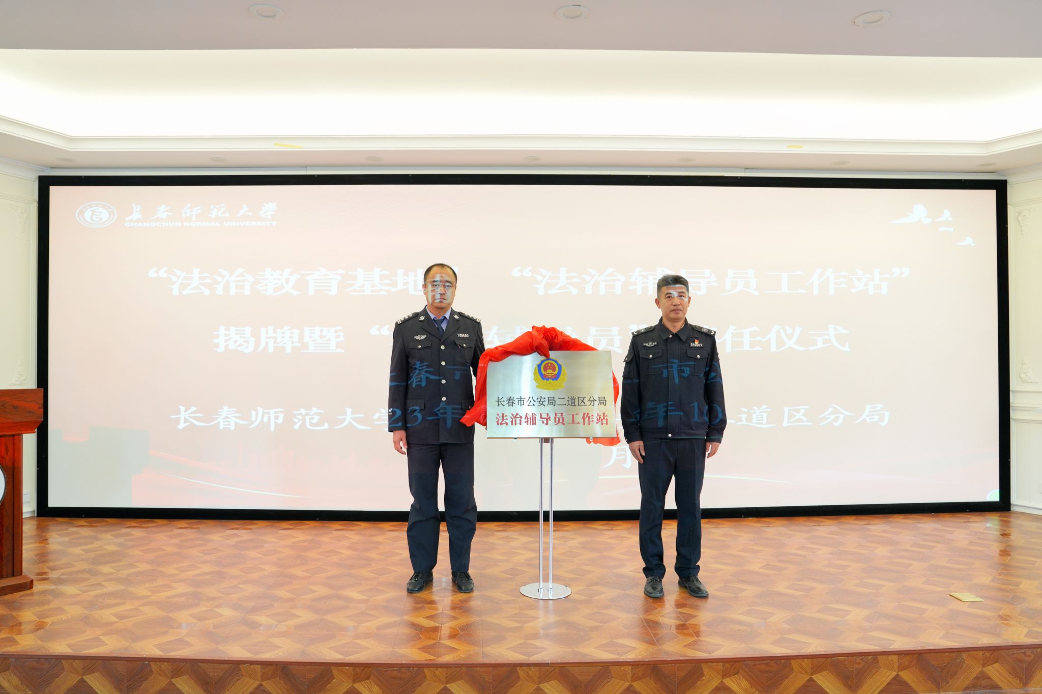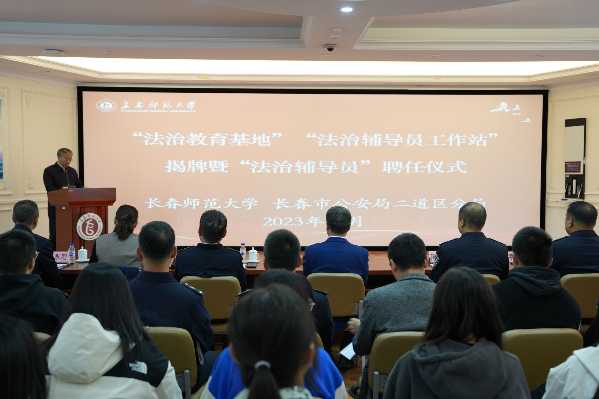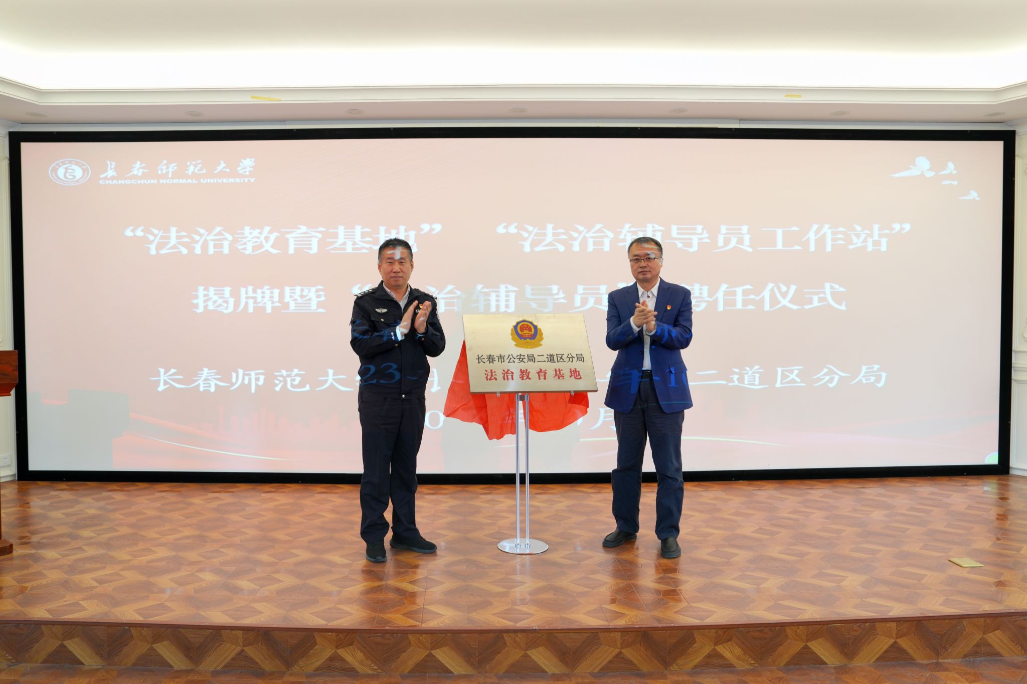 为深入学习贯彻习近平法治思想,推进平安校园建设,10月20日,我校与长春市公安局二道区分局共建“法治教育基地”“法治辅导员工作站”揭牌暨“法治辅导员”聘任仪式在法国文化中心举行。学校校长王延明、副校长陈爱梅,长春市公安局内保支队副支队长孙祥语,长春市公安局二道区分局副局长陶子军出席会议。党委副书记刘国宁主持会议。