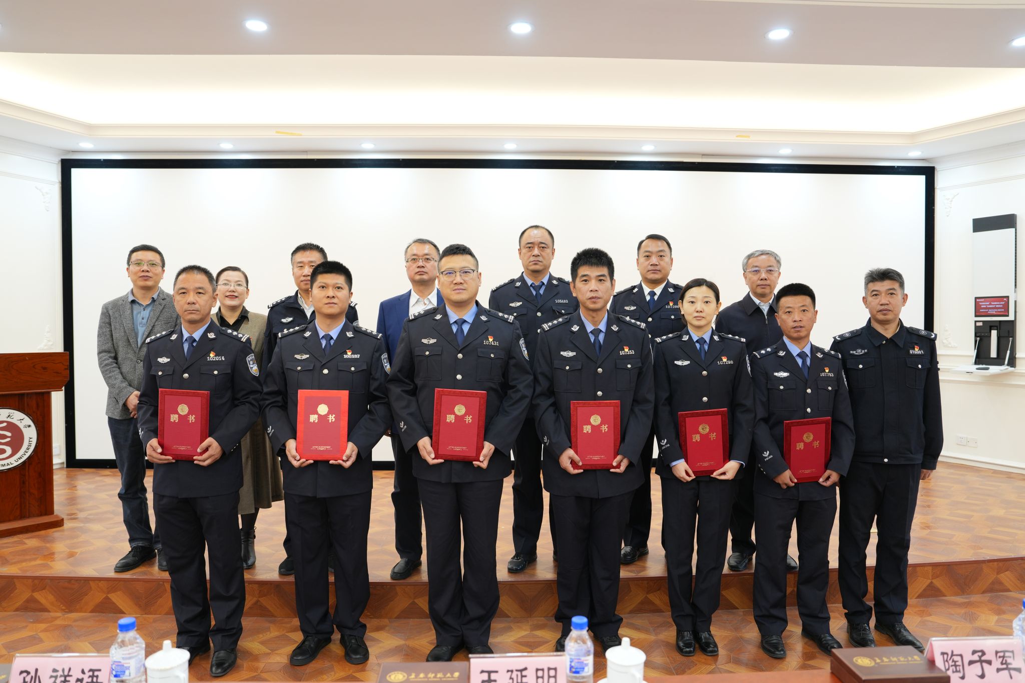 学校保卫处处长郭峰与陶子军为“法治辅导员工作站”揭牌。