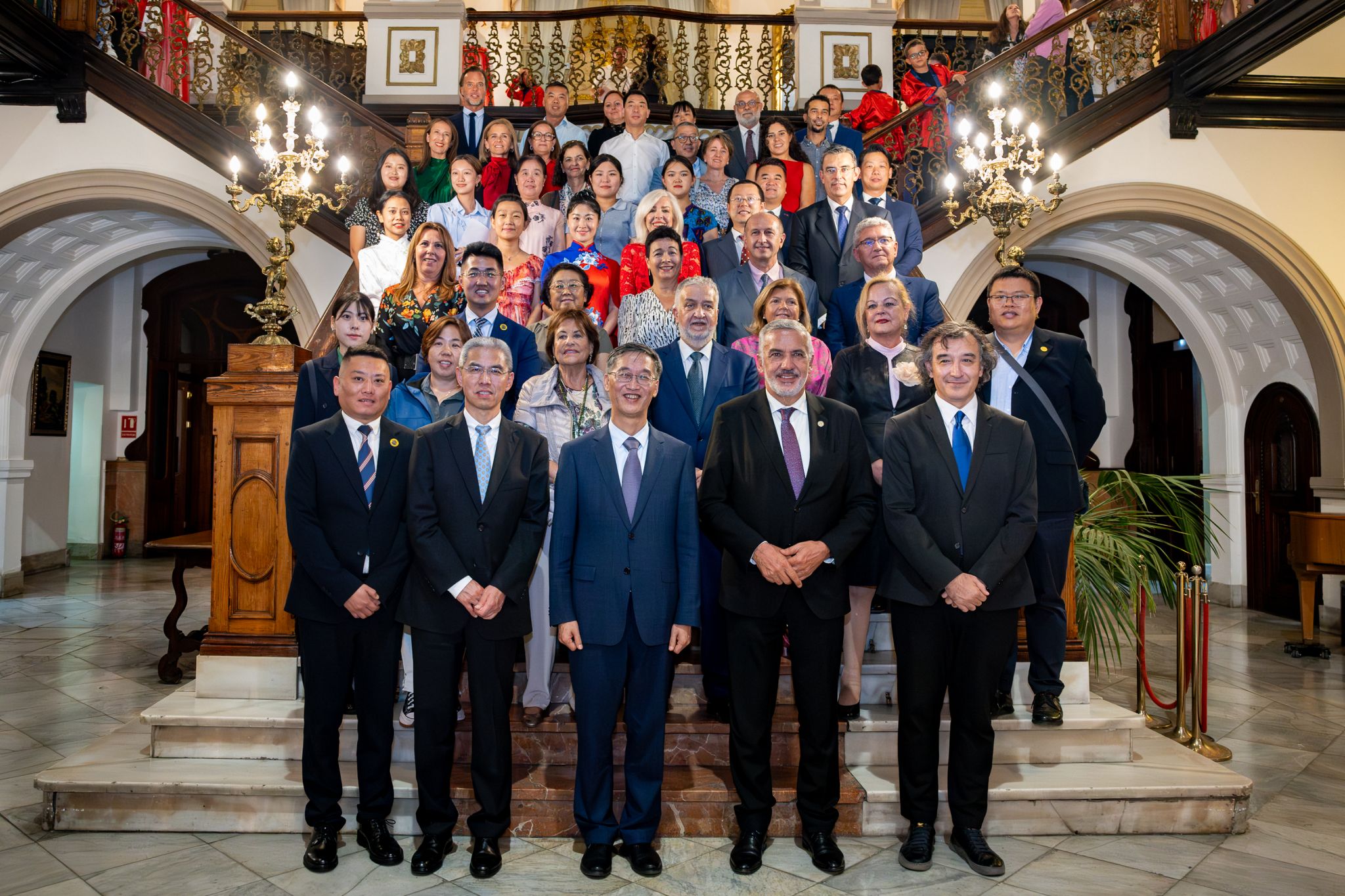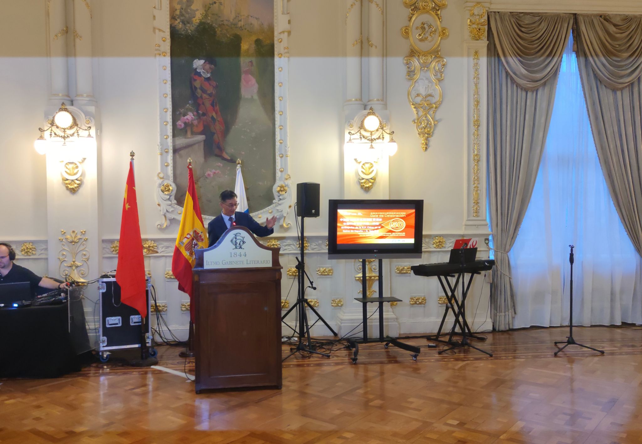 北京时间11月3日,为庆祝中西建交五十周年,我校西班牙拉斯帕尔马斯大学孔子学院举办庆祝中西建交五十周年文艺晚会。中国驻西班牙大使姚敬、中国驻西班牙使馆教育参赞赵伟民、加那利群岛政府大学与研究部副部长希罗、拉斯帕尔马斯大学校长路易斯·塞拉、副校长兼外方院长金·泰拉出席活动,我校副校长张德利以视频方式表达祝福。
