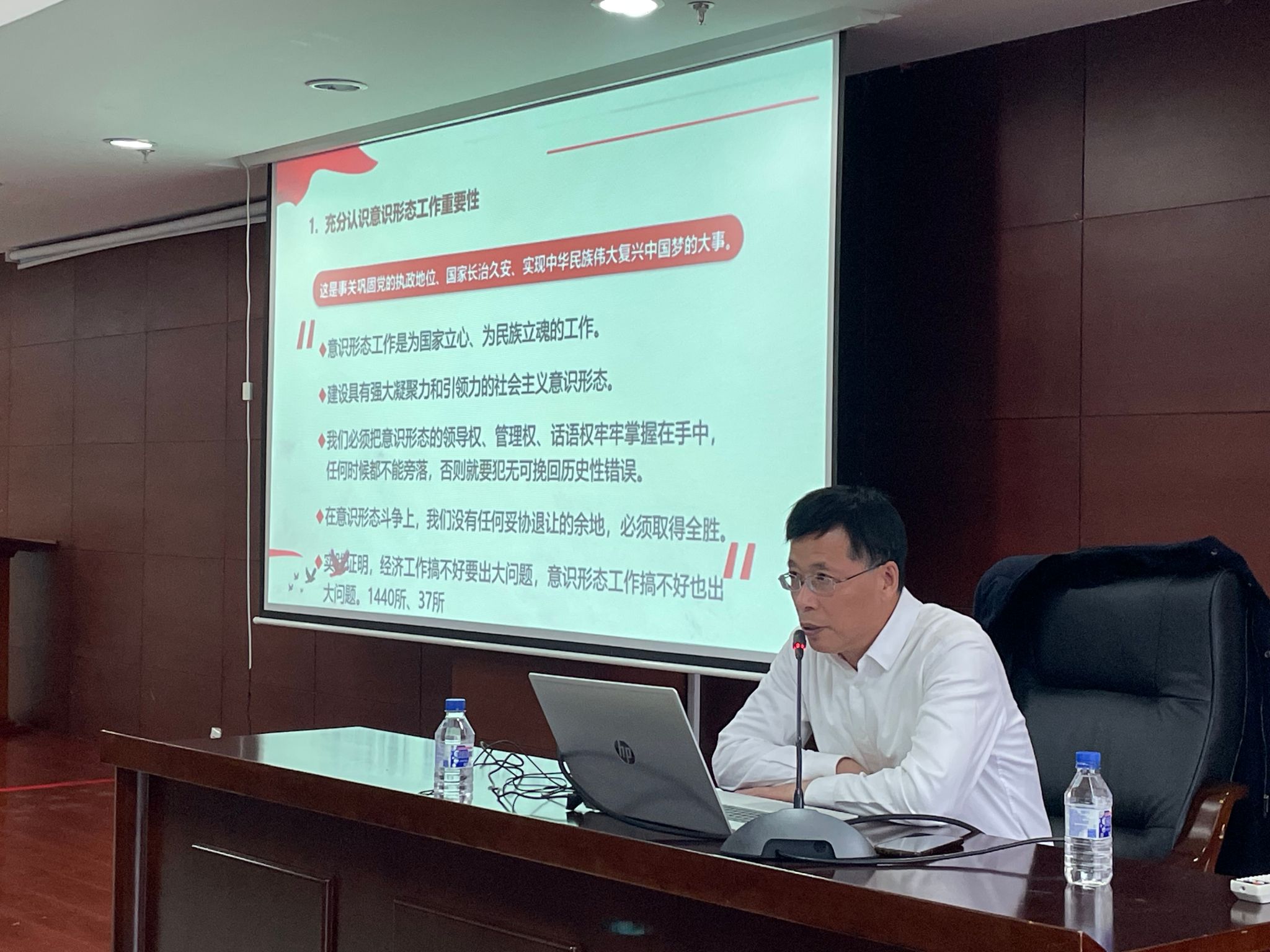 吉林省社会科学院(社科联)党组成员、副院长、研究员,省委讲师团团长史守林作主题为《深入学习贯彻习近平总书记关于意识形态工作重要论述——牢牢掌握意识形态工作领导权》的专题讲座。史守林从“深入领会把握习近平总书记关于意识形态工作重要论述”“全面了解新时代意识形态工作面临的新形势新挑战”“坚持用习近平总书记重要论述指导担当起新时代意识形态工作重任”三个部分进行分享。