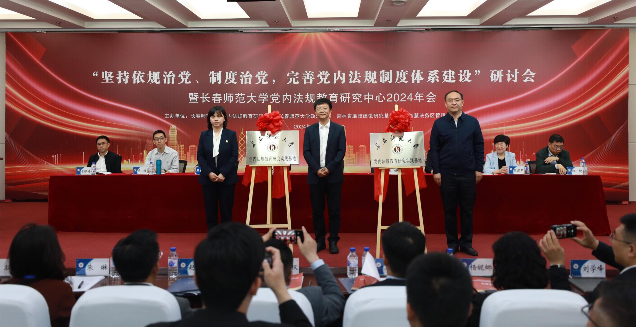 会上,刘鹏飞、姚健、曾丽君共同为我校与长春市法学会、吉林省律师协会建立的党内法规教育研究中心实践基地揭牌。