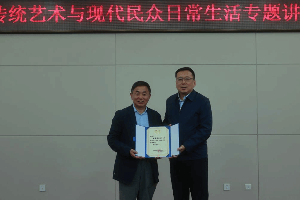 6月3日下午,中国传媒大学艺术研究院院长王廷信做客我校“影之旅大讲堂”,作题为《中华传统艺术与现代民众日常生活》的报告。我校党委书记刘多出席报告会,并代表学校为王廷信颁发特聘教授聘书,副校长张德利出席活动并致辞。