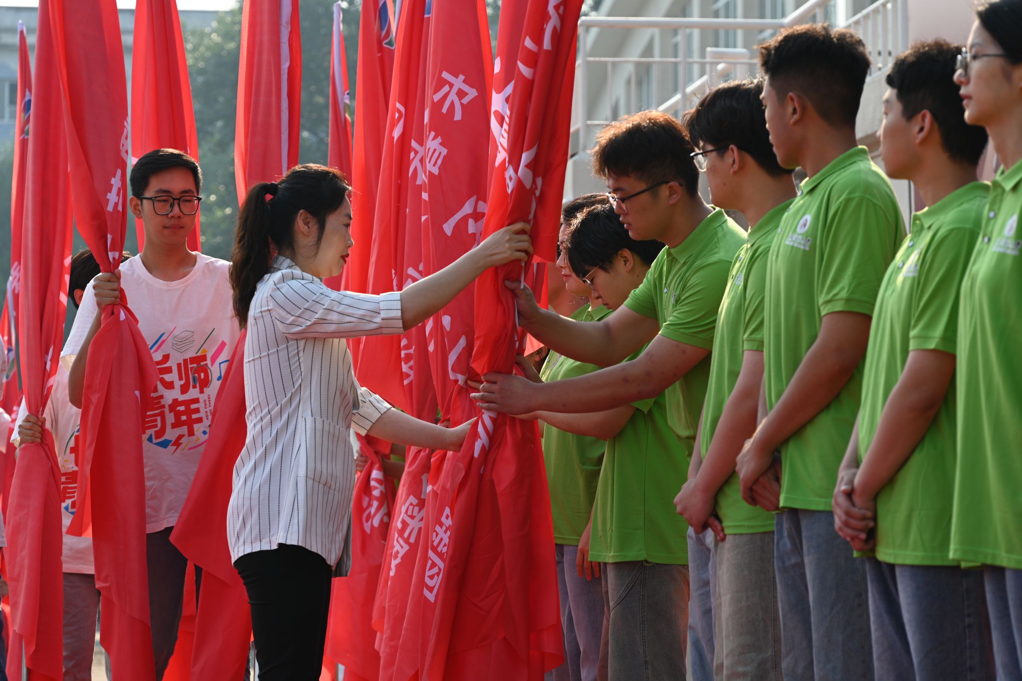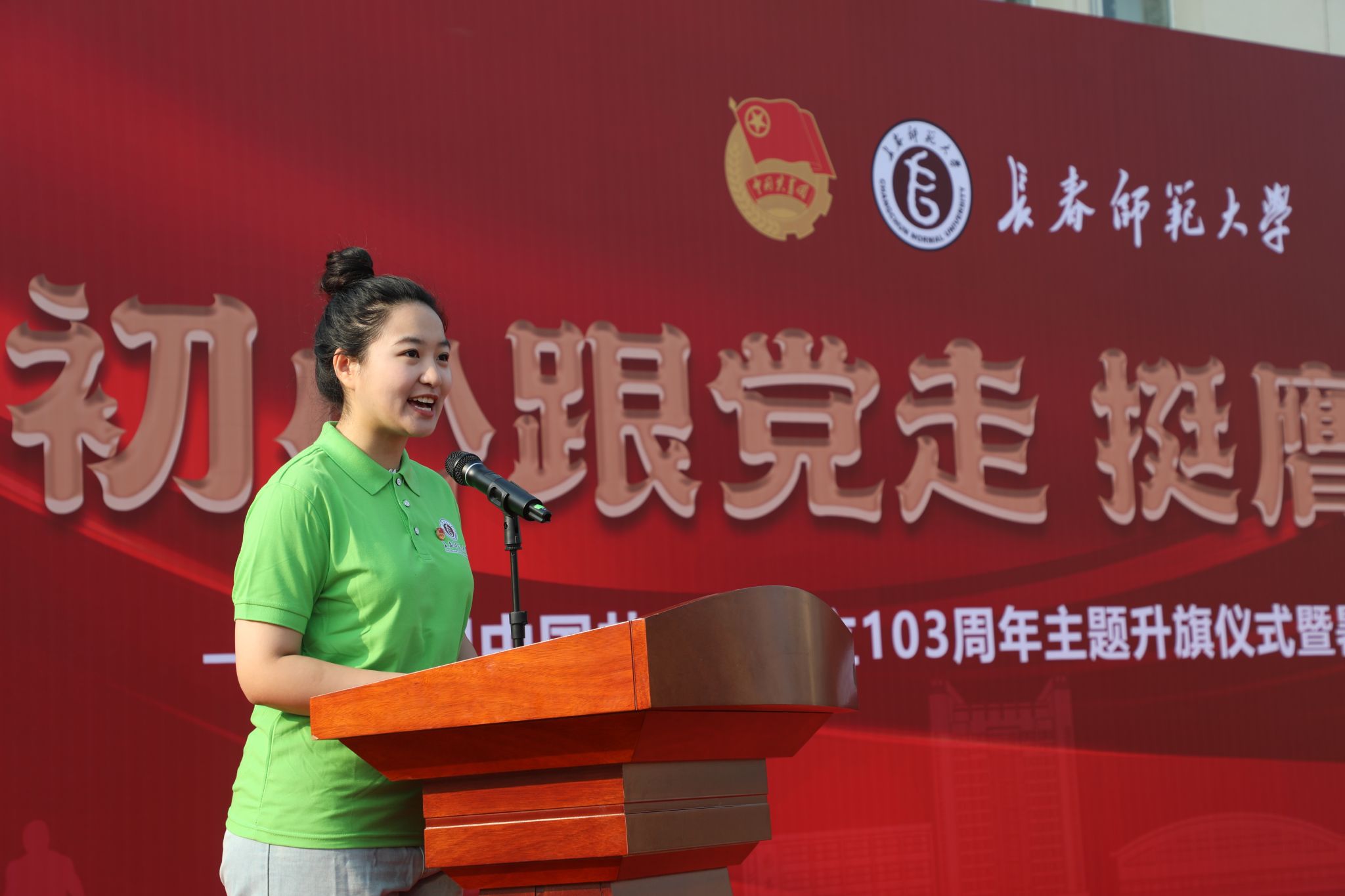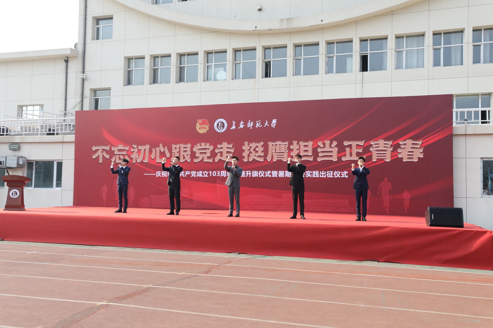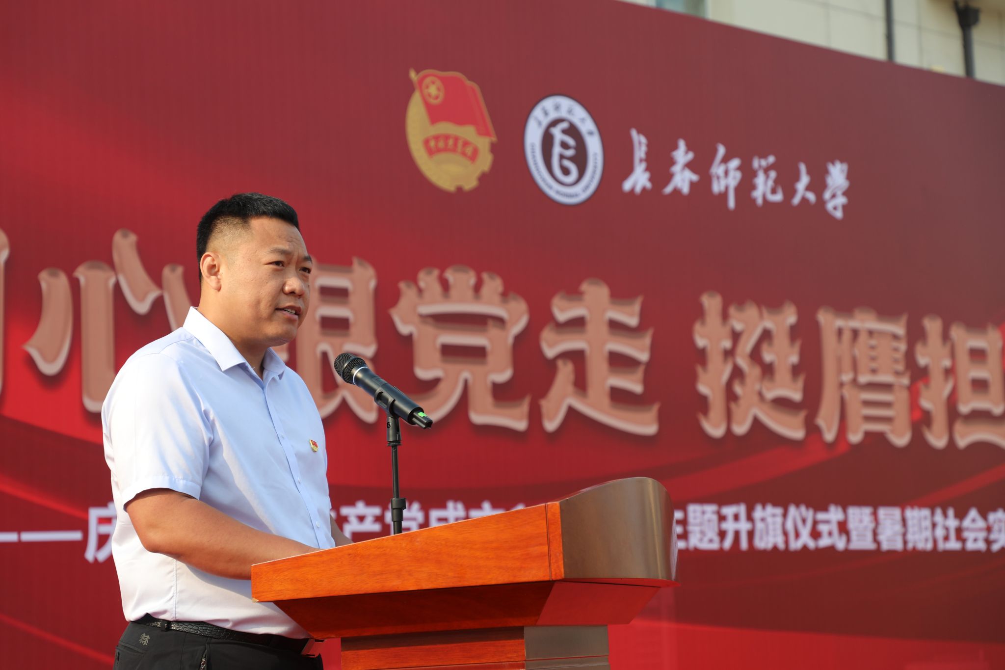 校团委书记闫芳向即将奔赴祖国各地进行暑期社会实践的20支实践队代表授旗。闫芳希望广大长师青年在“躬身实践”中厚植爱国爱党情怀,以“自找苦吃”的心态主动迎接挑战;在“乡土深处”肩负起新征程的使命任务,扎根吉林沃土,聆听乡土的呼唤;在“服务大局”中锤炼过硬本领,在社会和国家发展中实现个人价值;在时刻心怀家国情怀、永葆青春活力的同时要时刻保持安全警醒,在社会实践中快乐充实,满载而归。