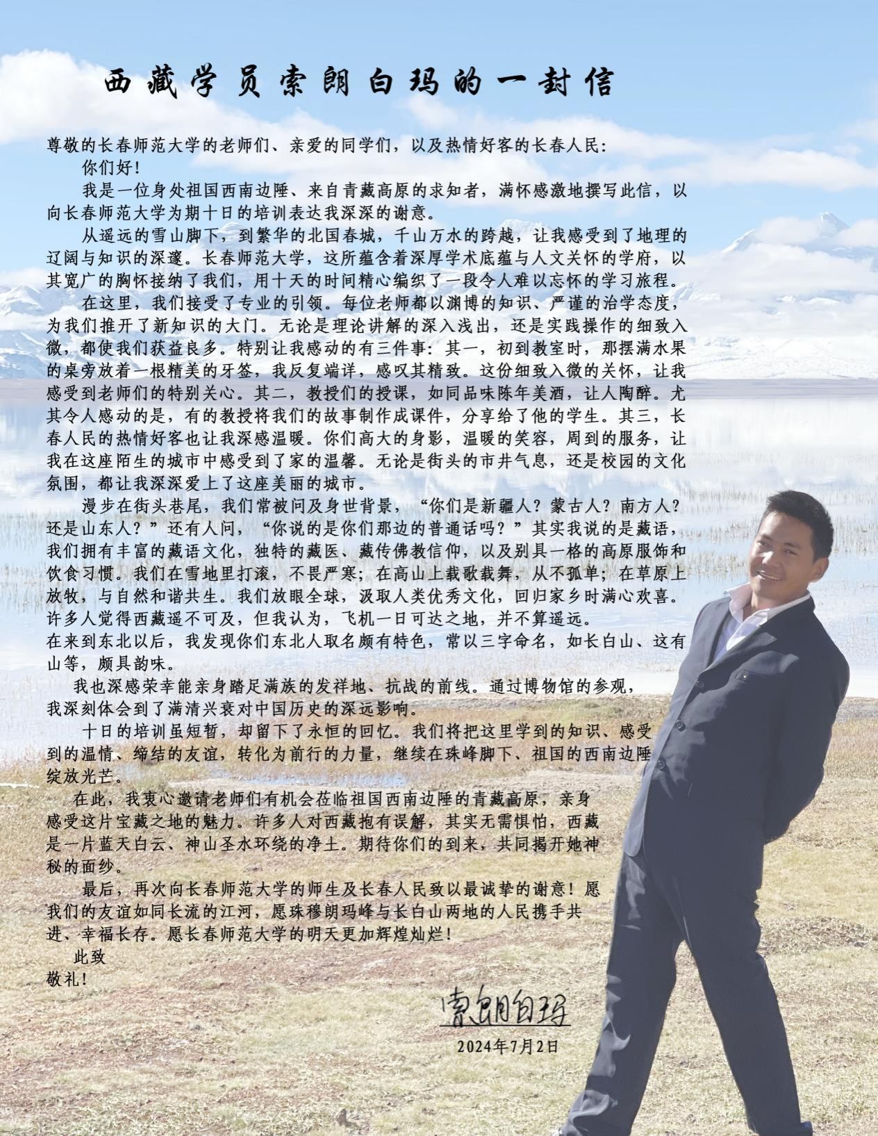 近日,来自西藏自治区日喀则市藏语文编译系统的骨干学员索朗白玛,在完成一场为期八天的国家通用语言文字能力提升培训后,向我校发来一封情真意切的书信。索朗白玛在信中表示,通过参加这次培训,学员们不仅在语言文字能力上有了显著提升,更对如何在新时代背景下更好地发挥藏语文编译职能作用有了深刻的认识。