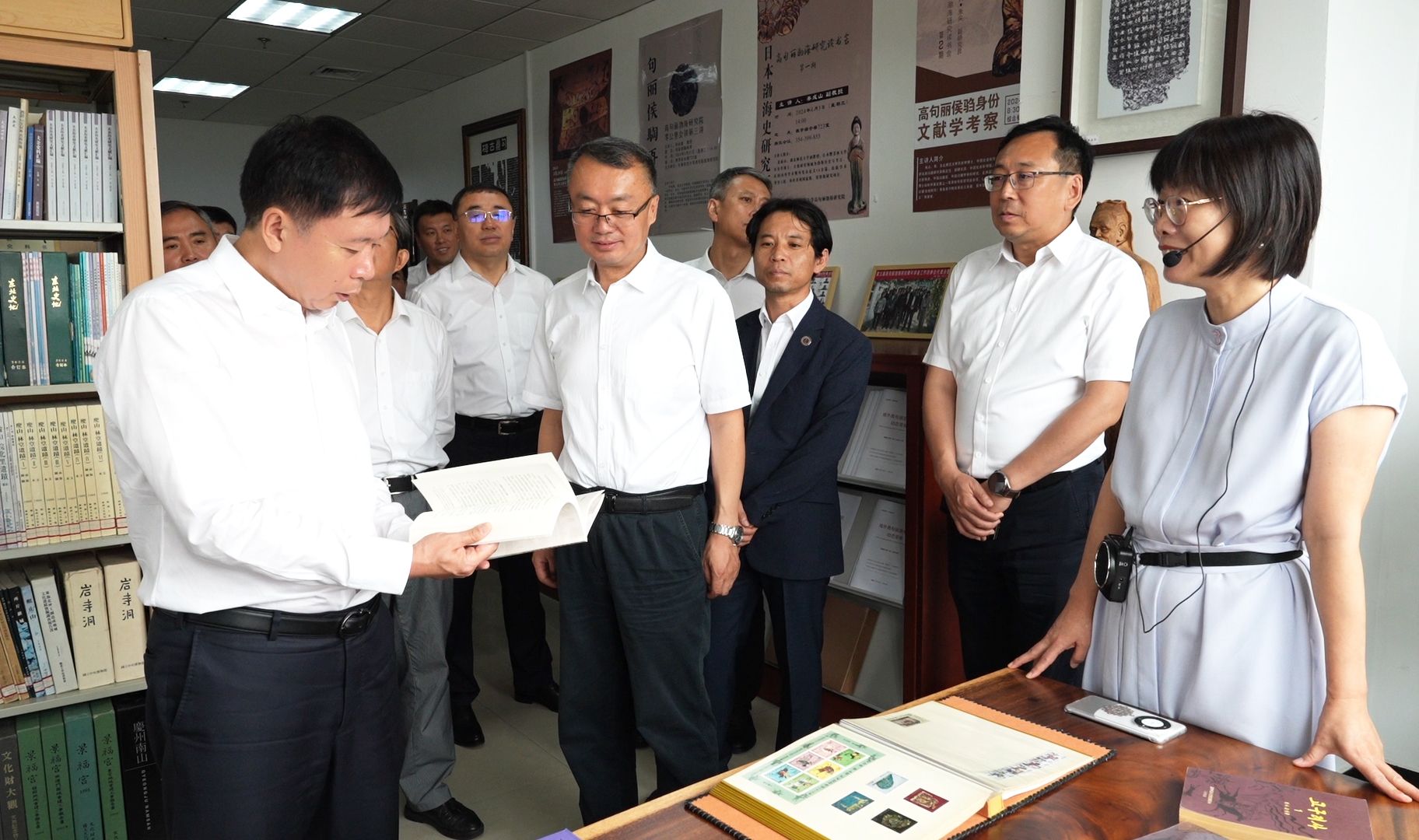 在教学综合楼大厅,赵显参观了学校“百年长师 筑梦远航”主题展,听取了学校的历史沿革、发展历程、教育教学、学科建设等总体情况的介绍,实地察看了学校东北民族陈列馆、日本民间所藏侵华资料馆、高句丽渤海资料信息中心。赵显对学校中国史学科建设和高句丽渤海研究等工作给予充分肯定,对学校重视学科建设的做法给予高度评价。