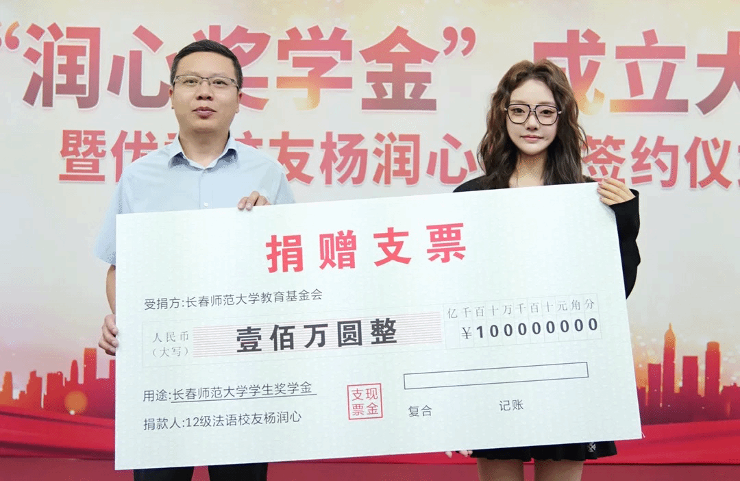 杨润心对学校的培养表示感恩。她表示,学校是她梦想的家园、创业的起点,学校给予学生梦想和勇气,教会学生做事要坚持不懈、勇于担当、脚踏实地。希望此次捐赠可以助力学校发展建设,帮助更多学生以拼搏奋斗、昂扬向前的发展态势,圆梦长师。