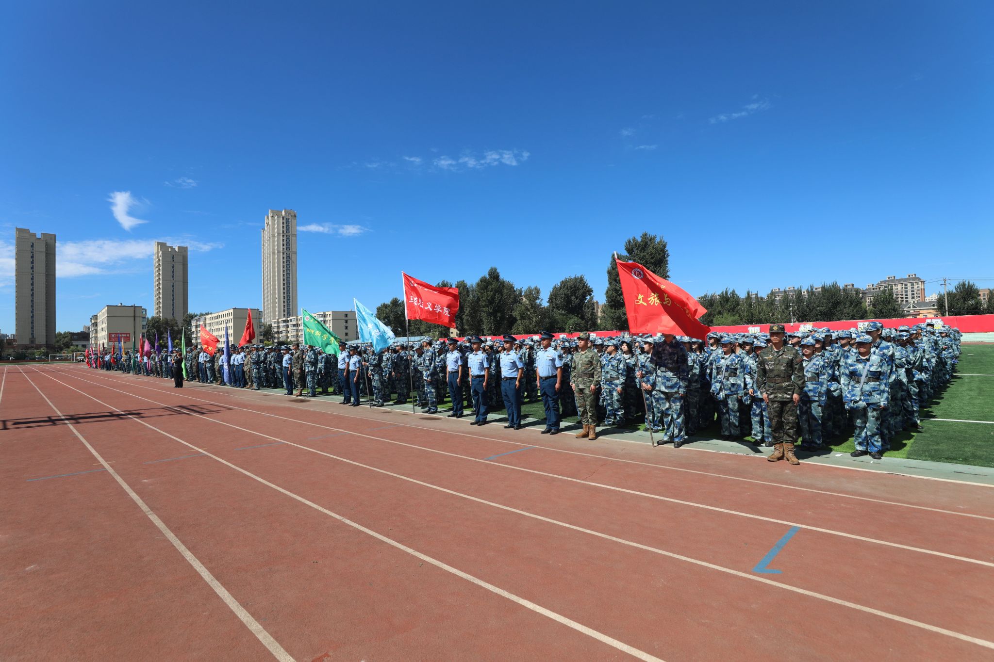 9月10 日上午,伴随着雄壮嘹亮的国歌声,我校2024级学生军训开训仪式在体育场举行,军训正式拉开帷幕。