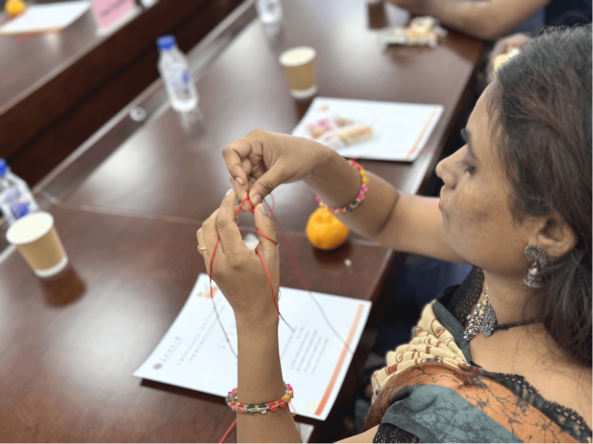 为让外籍专家和留学生们更好地了解中国传统文化,读书分享会还组织了手编体验活动,大家互学互鉴,共叙和谐发展的美好情谊,共同领略中国传统文化的无限魅力。