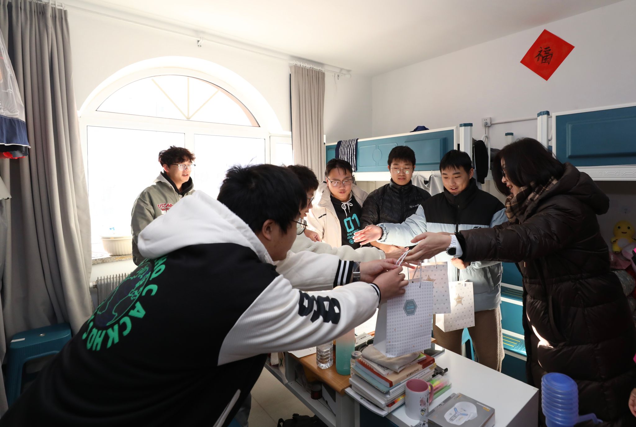在新年来临之际,张广翠还为同学们送上了特别的新年礼物。“在新的一年我一定能百事顺遂。”文旅与电影学院学生李宗翰接过伴手礼,开心地说道。同学们纷纷表示,他们将以热情、自信、饱满的状态,努力学习专业知识和技能,不断提升自己,有信心在学业、就业等方面取得优异成绩。