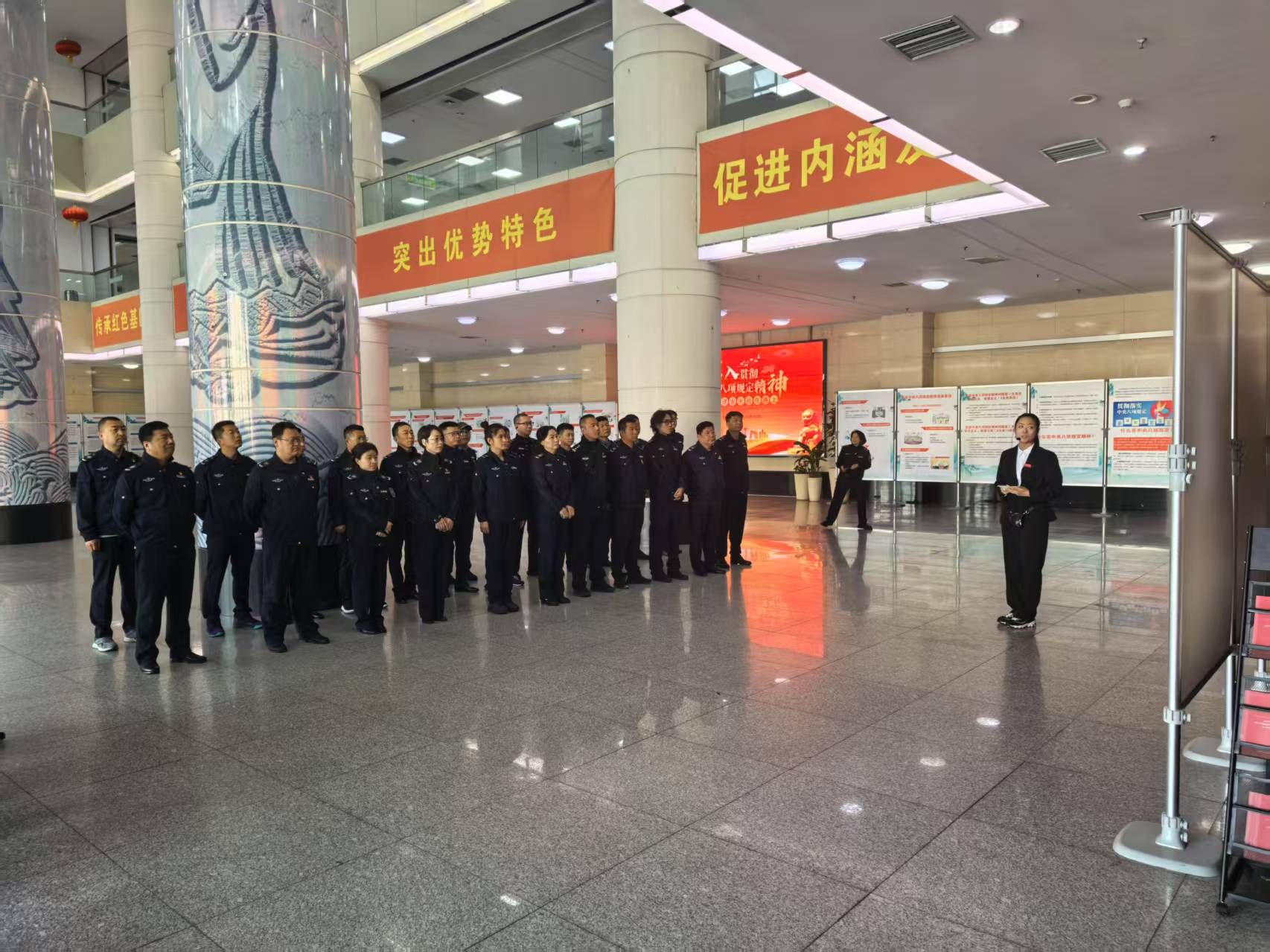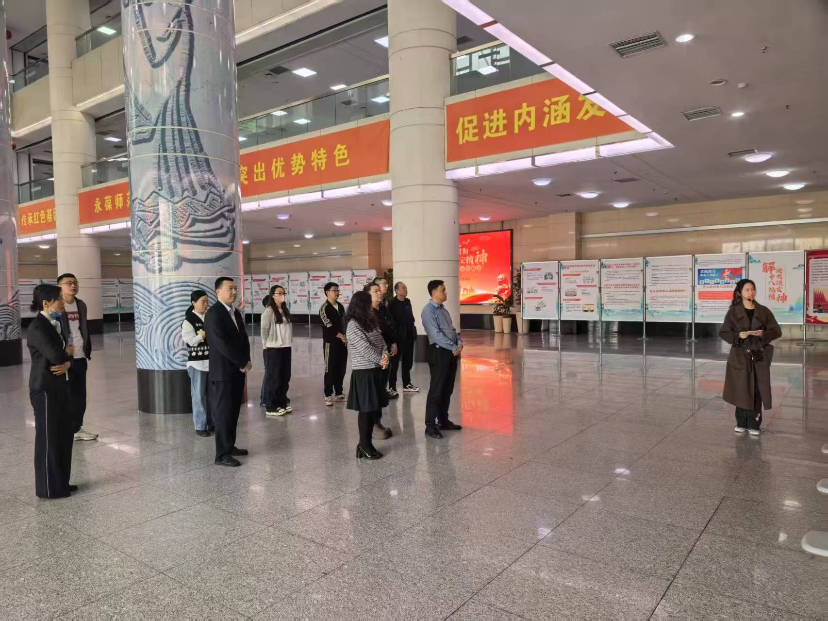为贯彻落实全面从严治党战略部署,推进深入贯彻中央八项规定精神学习教育走深走实,进一步强化作风建设,增强廉洁自律意识,5月21日,学校领导班子全体成员前往教学综合楼二楼大厅,参观“作风建设永远在路上—深入贯彻中央八项规定精神学习教育”警示教育展。